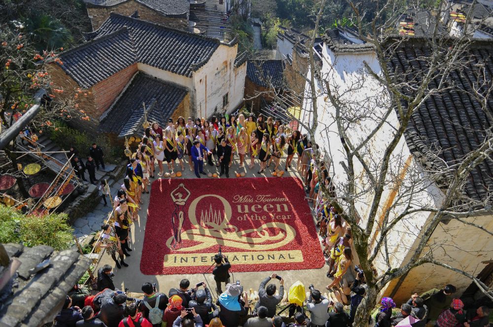 2017世界旅游小姐年度皇后总决赛于12中旬牵手“篁岭晒秋”开启巡游之行——来自100多个国家和地区的佳丽们齐聚江西婺源篁岭古村,领略中国最美乡村的自然风光,体验千古遗存的晒秋民俗。