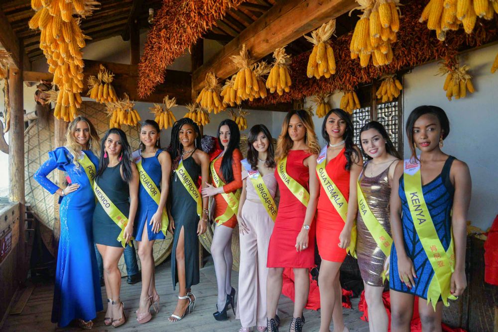 2017世界旅游小姐年度皇后总决赛于12中旬牵手“篁岭晒秋”开启巡游之行——来自100多个国家和地区的佳丽们齐聚江西婺源篁岭古村,领略中国最美乡村的自然风光,体验千古遗存的晒秋民俗。