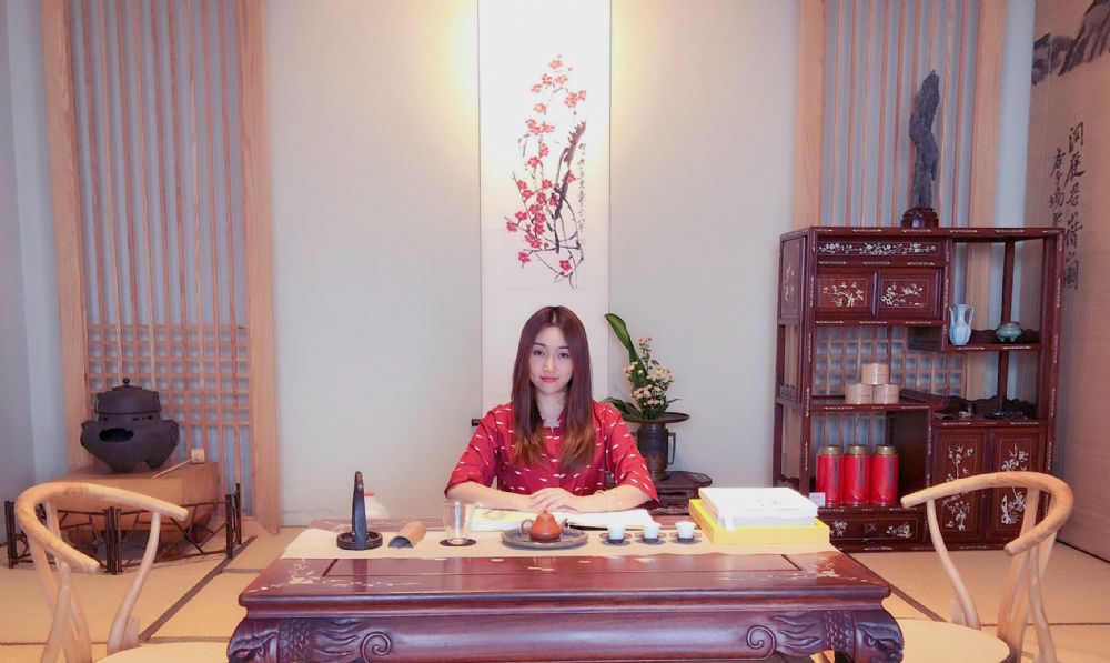 \ 图4 -4龘藏网拍主播郑淇心在上海介绍齐白石梅花图