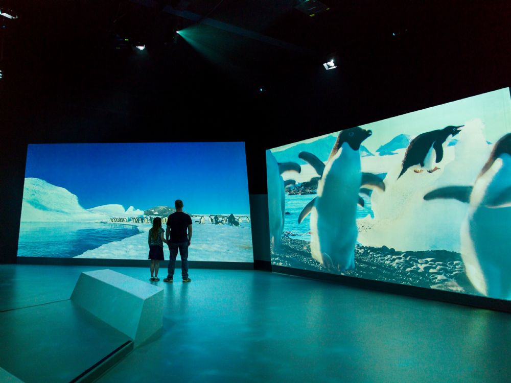 南极之旅将带领游客们前往南极洲的美妙世界,展开一场虚拟探险。以广阔的南极为背景,这个偏远大陆独特的珍贵野生动植物将一一浮现在眼前。这沉浸样式的高科技多媒体体验中,你会被面前的视听奇观深深迷住。尖端的“增强现实”技术,让你能够站在浮冰上轻拍企鹅、抚摸海豹、观赏身边伸手可及的鲸鱼。