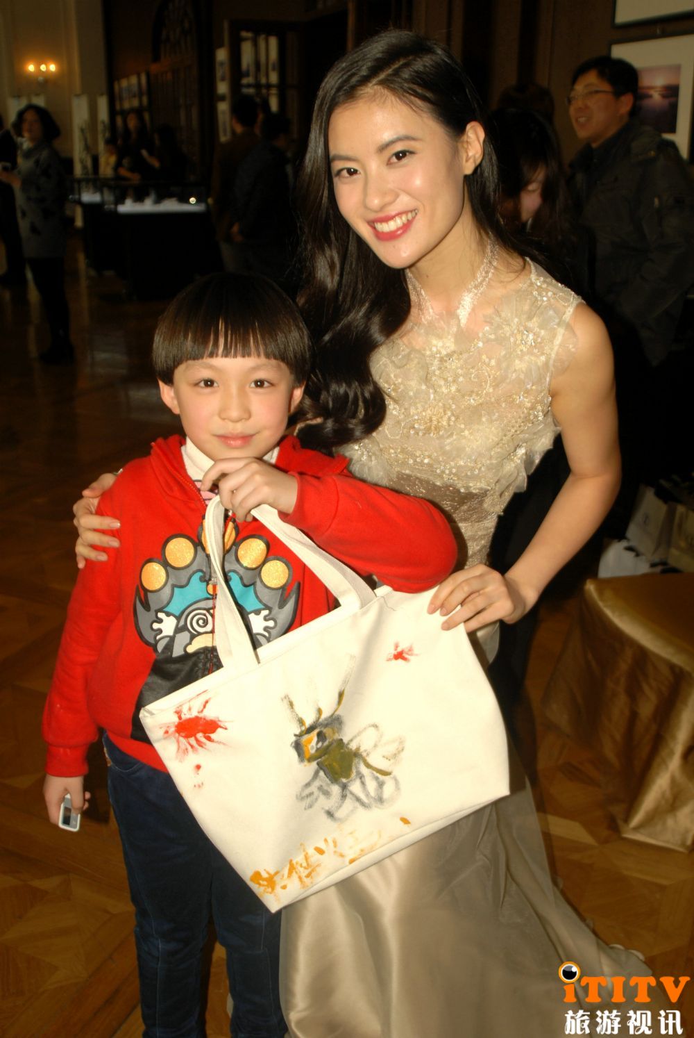 图19:地球小姐中国区2013年总决赛冠军相杨一年来环游世界,用微笑和行动帮助孩子、老人及弱势群体。图为在上海策划参与慈善活动与小童星合影