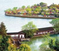 蠡园:蠡湖、蠡园离鼋头渚公园很近,皆因著名历史人物范蠡而得名。传说越国大夫范蠡助越灭吴后,曾与西施泛舟在五里湖上。后人为纪念此事,把五里湖改名为蠡湖。蠡湖是太湖的一部分,又名五里湖。蠡园的布局,一部分以太湖石堆放的假山为主;另一部分以湖边的千步长廊、沿湖长堤为主,景色怡人。