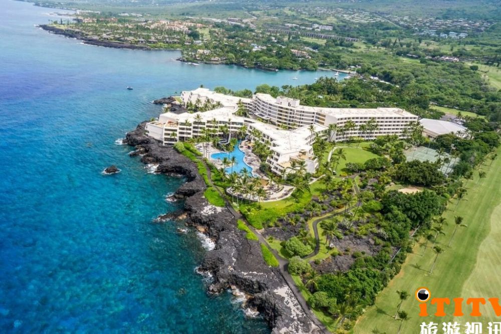 栖居于22英亩繁茂苍翠中的度假酒店傲立于引人注目的火山岩海崖之上,拥有509间客房和套房、水疗中心、婚礼教堂、夏威夷传统文化中心、健身中心、儿童俱乐部、海滨泳池、百变水滑梯及两间餐厅和四处室内会议场所——其中一处为科纳海岸最大的大型会议中心,面积约1万平尺。绿松石般晶莹的海水环绕其间,这里也成为了世界上为数不多的可与蝠鲼嬉戏的天堂之境。