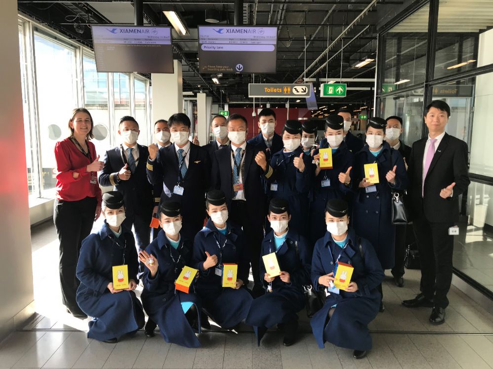 代表荷兰特色的米菲兔和史基浦机场礼包同样也在3月4日送给了厦门航空MF0812机组成员,厦门航空同仁表示:“感谢史基浦机场送来的暖心礼物,希望疫情可以尽快过去,一切变得越来越好,有更多的航班往来中国与荷兰,大家在疫情面前一起加油!”