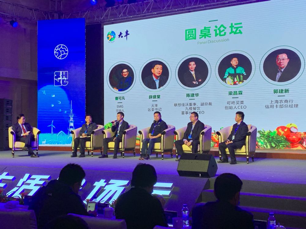 在圆桌论坛环节,叮咚买菜创始人CEO梁昌霖、九橙餐饮董事长兼CEO陈建华、上海农商银行信用卡部总经理郭建新、大丰区区委书记薛盛堂和上海农场有限公司董事长何为志五位嘉宾展开对话交流和思维碰撞,围绕长三角区域一体化进程中城市群的生鲜产品消费趋势及机遇、生鲜电商如何助力长三角农产品新零售、如何保障农产品的安全与品质、智能时代农产品产销的商业模式和金融创新、在长三角一体化背景下如何打造飞地农业经济示范区等话题,共同探讨新时代、新背景、新形势下的农产品消费和农产商业模式面临的机遇与挑战。