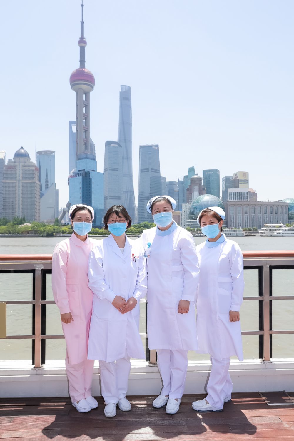 此次参加浦江游船的大多都是来自抗疫一线的工作人员。在这初夏时节,除了浦江两岸的风光,“最美逆行者”的身影也成为了最靓丽的一道风景线。
