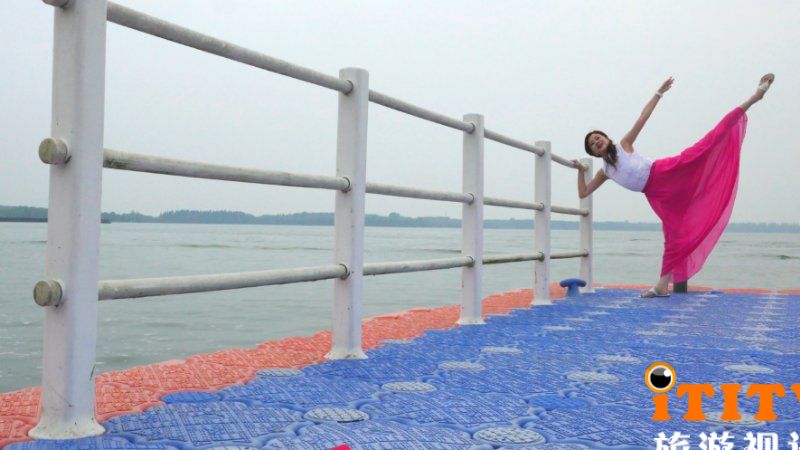 在西沙明珠湖景区“泛舟”体验着速度与激情的 “芭蕾公主”,情不自禁地在明珠湖畔、和水陆两栖车上优雅展风姿……