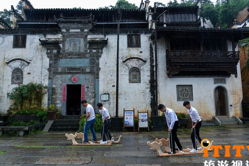 民谚曰:“端午节,五毒醒,不安宁。”农历五月又俗称“毒月”,蛇蝎蜈蚣等活动频繁,所以篁岭在端午这天举行了“射五毒”游戏,增加游客对“卫生防疫”的认识,以求祛病强身。篁岭的传统端午不仅情意浓浓,“划旱龙舟”更是让游客热火朝天,体验感十足,由于地处山区,篁岭没有大江大湖,游客在村里划旱龙舟,体验不一样的端午活动。