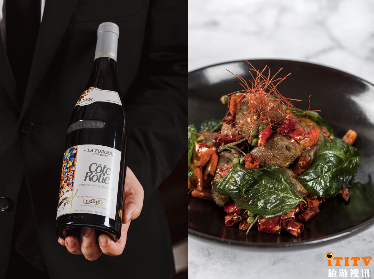 在杰出侍酒师团队的服务及推荐下,客人们能体验到以肉类、海鲜等食材为代表的经典菜肴与佳酿和谐配搭而成的味觉盛宴。比如文华扒房+酒吧菜单上的龙虾沙拉,配上一款来自新西兰北岛的Chardonnay, Kumeu River Estate, West Auckland 2018白葡萄酒,其轻快活泼的风格可媲美勃艮第南部产区特色,有清鲜的梨、青苹果、柑橘果味,加以香草、烤吐司和黄油的香气,与沙拉中微甜香的松露油醋汁相得益彰。用产自宁夏的Cabernet Sauvignon, Four Seasons, Jade Vineyards, Ningxia 2015佐一道紫膳出品的椒麻爆炒和牛粒,口感浓郁饱满,宁夏得天独厚的自然资源赋予了这款红酒厚重与细腻兼具的特质,带有红色浆果、黑莓、果酱等的复合味道。一款来自美国加州的Cabernet Sauvignon, Ramey, Napa Valley 2013则更为适合搭配油脂均匀,口感鲜嫩多汁的澳洲安格斯西冷经典肉扒,丰富的单宁,18-20个月的橡木桶熟成,赋予这瓶纳帕谷赤霞珠浓郁厚重的酒体,有独特的橡木、香草、巧克力和烤吐司的风味,口感平衡饱满、结构紧实,与肉扒油脂的香润完美结合,互为衬托。甜酒配甜品。以原产地命名保护的葡萄牙波特酒是浓郁饱满的酒精加强型红葡萄酒,来自杜罗河地区的Graham’s ‘Six Grapes’ Reserve Port,带有蓝莓与蔓越莓的香气,以这样一杯甜酒搭配甜品作为一餐收尾,或替代甜品单独享用,再合适不过。