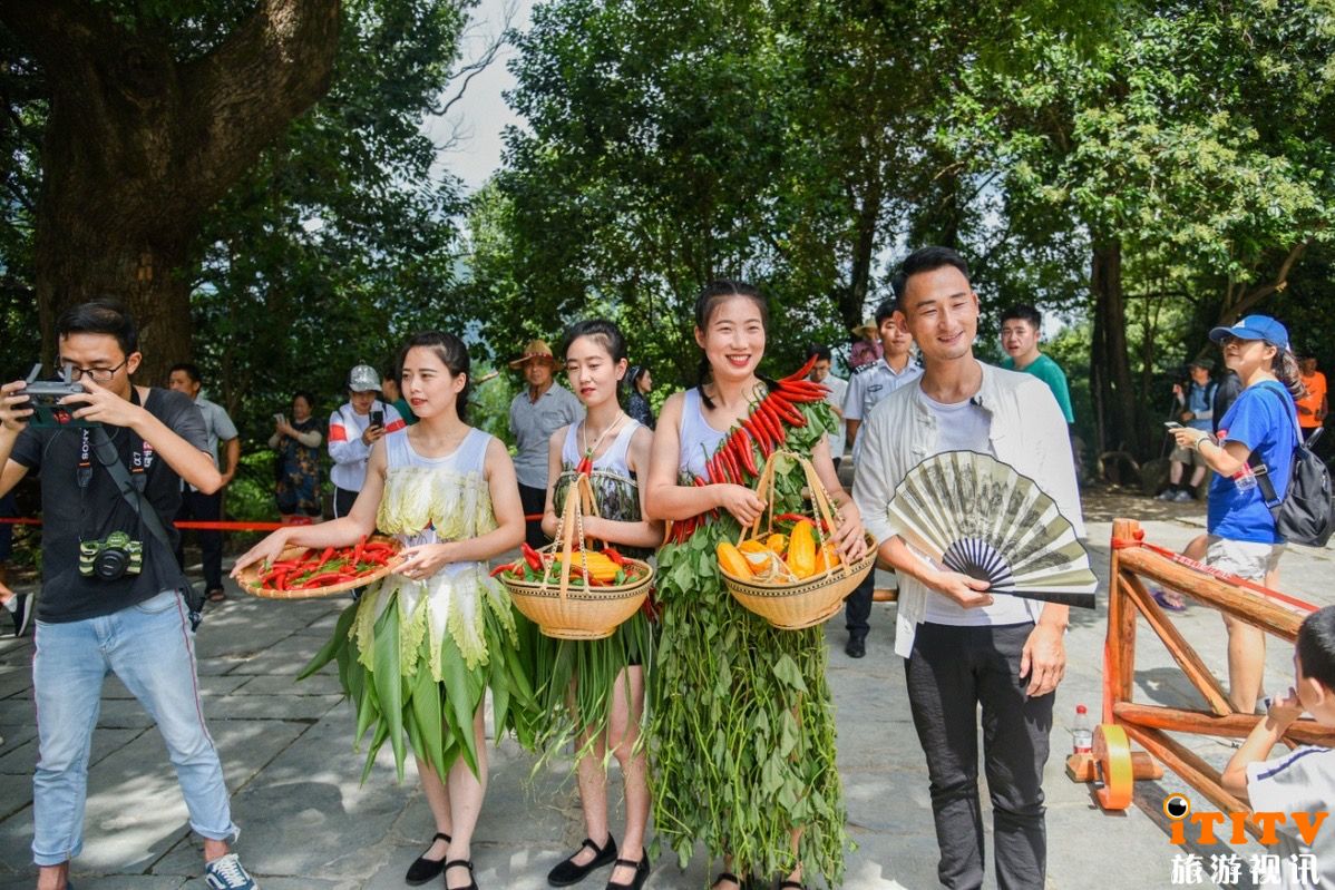 “全体村民注意啦!现在我们篁岭村的村长吴向阳上台讲话啦!大家呱唧一下、掌声欢迎……”篁岭景区还原了从前乡村开大会场景的创新举措,迅速吸引了当日村民和游客的关注:“哎,你们别看那舞台布置的和俺们村以前开大会一样简陋,就晒着些玉米、南瓜、辣椒,但现场的演出真不赖啊。”“有唱歌的、跳舞的、打快板的、唱戏的.......对了,还有几个女娃娃儿把地里刚熟的辣椒、豆角摘了来,串成衣服穿身上在那说是走秀呢。俺也是第一次见,你们别说,可老有意思了,篁岭他们村的辣椒长得也不赖,又红又大的。”“俺还拍了照片和视频呢,来来来,给你们看看......”