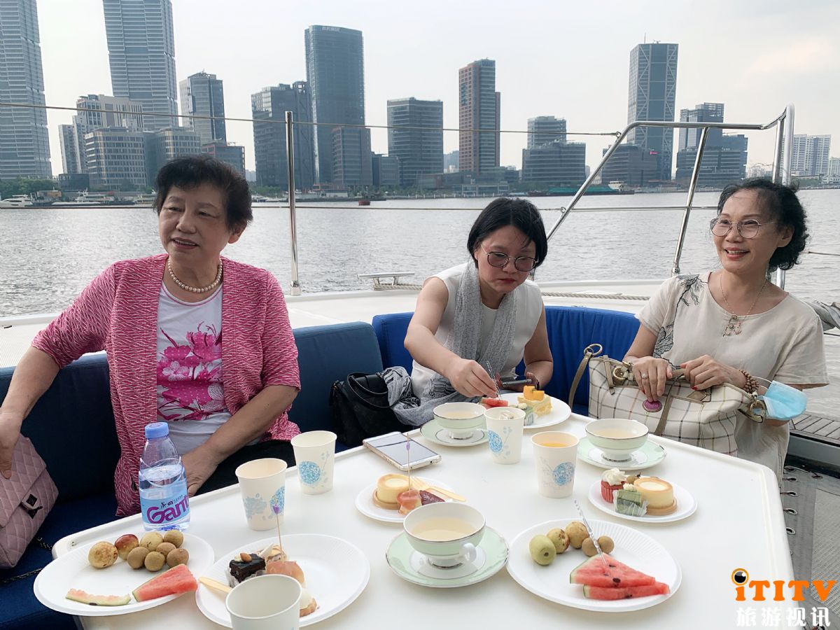 我们登上了大都会2号游艇,主管王女士告诉我们:九月和十月上海旅游节期间,来预订游艇聚会、出游浦江游览观光的客人特别多。据8月30日“晓得上海-大都会游艇下午茶”直播活动统计,约2小时13分、观看人数3.9万人,在线获得点赞7231次。王女士在微信上兴奋地说:这次活动完美PK掉同平台黄金时段的国际著名品牌等官方直播,厉害了!