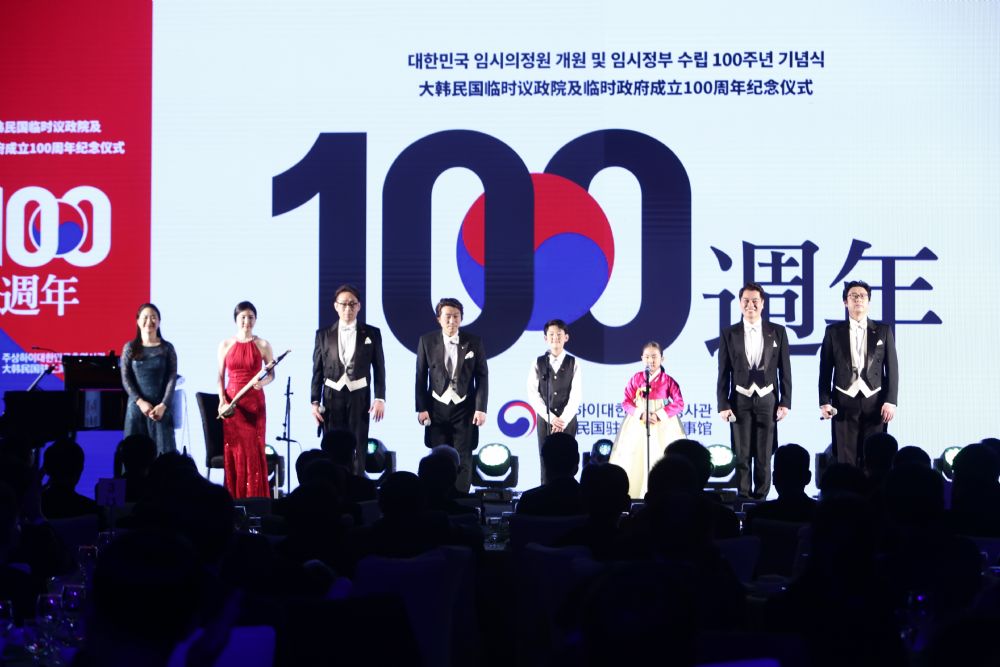 2019年4月11日晚,由韩国驻上海总领事馆主办的“大韩民国临时政府成立100周年纪念仪式”在上海虹桥元一希尔顿酒店宴会厅举行。3·1运动及大韩民国临时政府成立100周年纪念事业促进委员会委员长韩完相、以民主党院内人士洪永杓为代表的国会议员、独立有功者后代、韩国侨民以及上海市人民政府、文化艺术界、历史遗迹、新闻传播界等各界代表人士出席了本次活动。