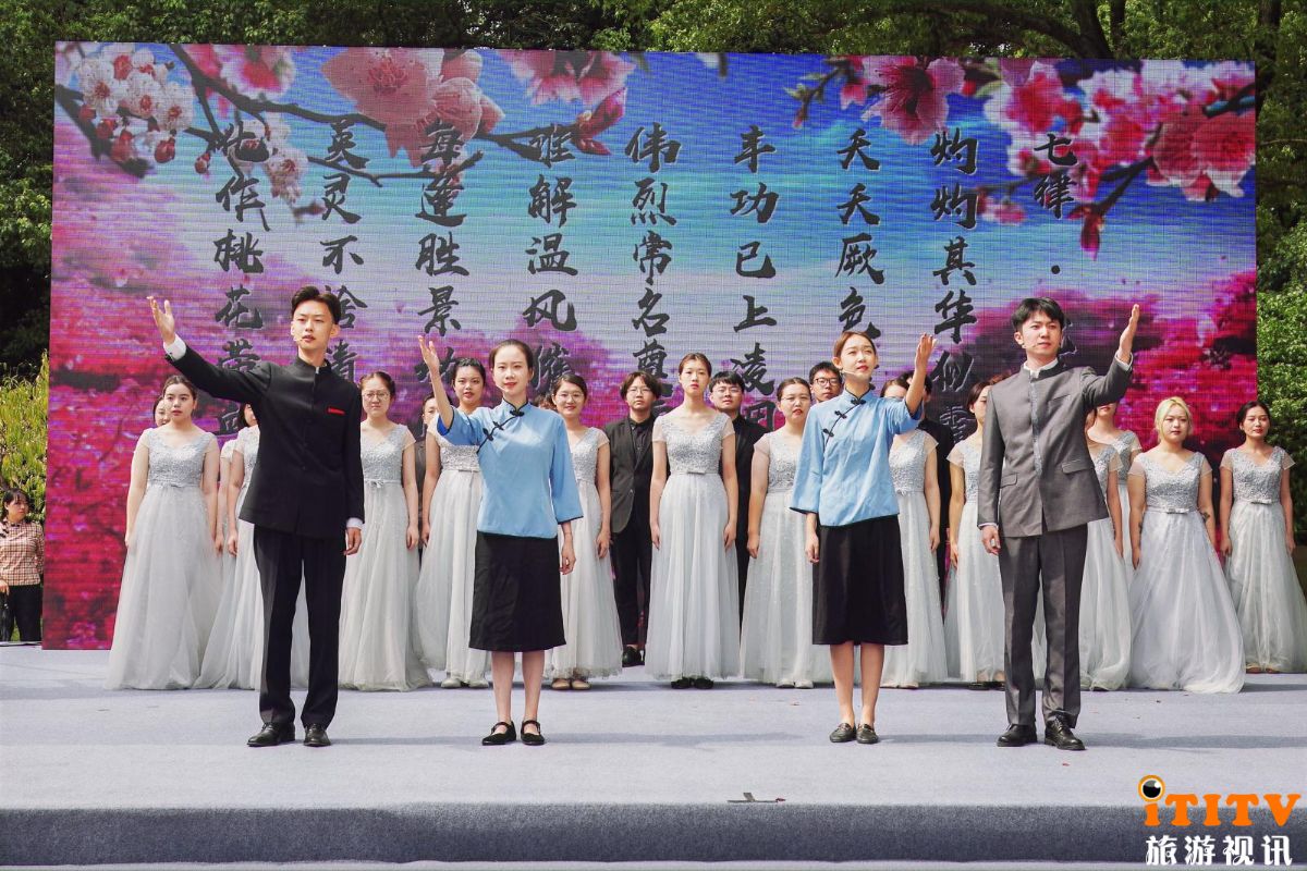 9点30分,与会人员在庄严肃穆的开门仪式和升旗仪式后步入龙华烈士陵园特别布置的文创市集。10点钟东方红钟声准时响起,伴随着《血染桃花红满天》的音诗画,“菊舞盛世 珍爱和平”主题活动拉开序幕。本次活动以中国抗战史上重大的历史事件、红色经典文化为引,绘制出动人的历史画卷,再次见证中华民族前进的脚步。