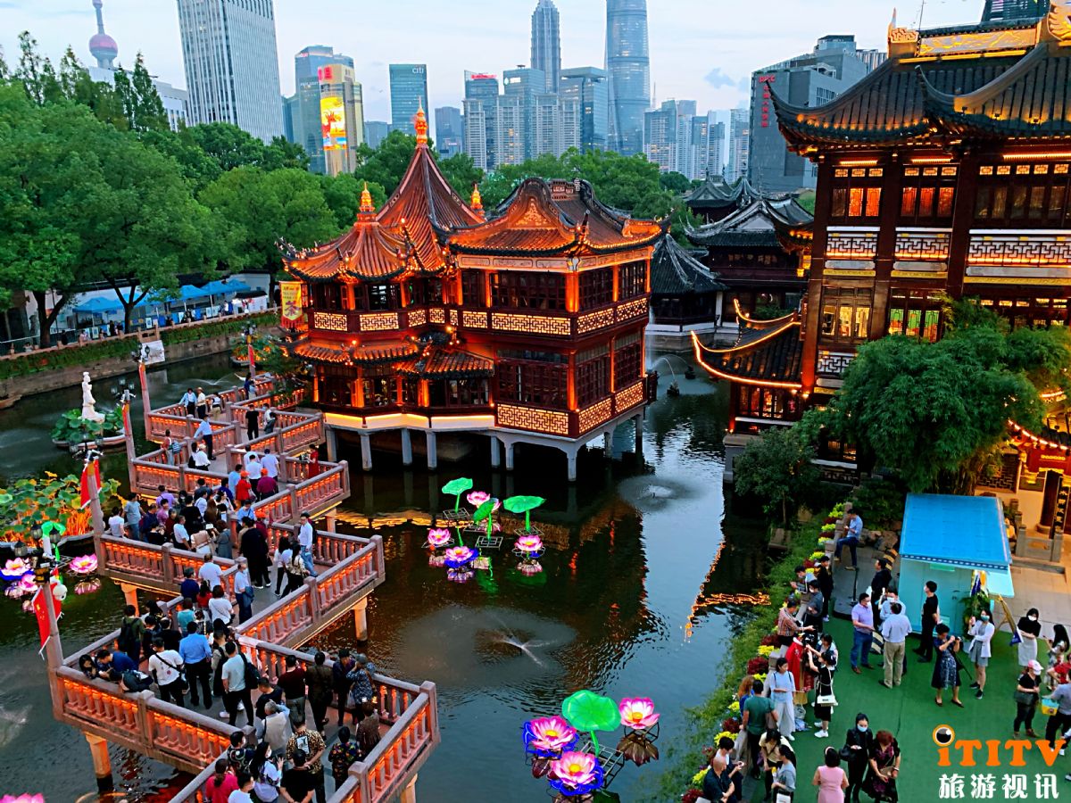 图2 从豫园九曲桥也可眺望上海中心等高楼