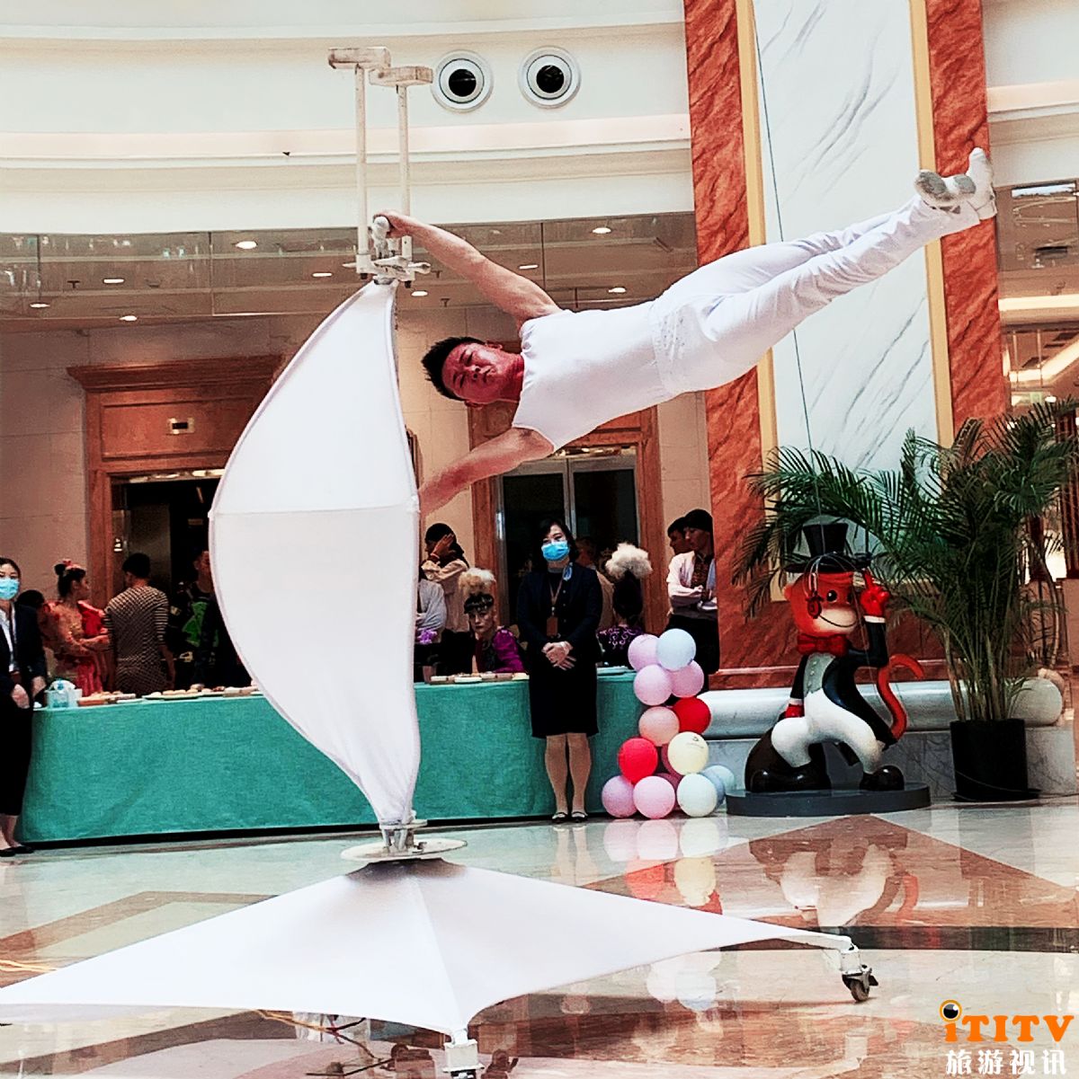 在太阳大厅,采风团欣赏了环球港演绎团队带来的一场视觉盛宴,空中绸吊、新疆歌舞、花式足球......据了解,“天天演艺秀”全年365天不停歇,其演员均是“黄金100秒”、”星光大道”、”中国达人秀”的冠军演员,得到了周边社区居民的广泛关注和长期喜爱。