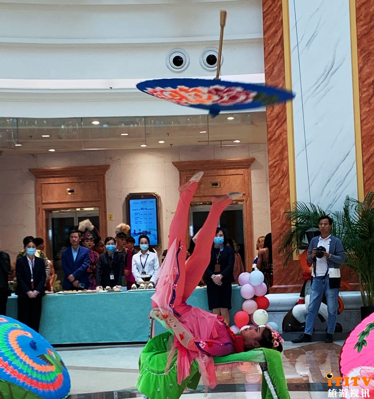 在太阳大厅,采风团欣赏了环球港演绎团队带来的一场视觉盛宴,空中绸吊、新疆歌舞、花式足球......据了解,“天天演艺秀”全年365天不停歇,其演员均是“黄金100秒”、”星光大道”、”中国达人秀”的冠军演员,得到了周边社区居民的广泛关注和长期喜爱。