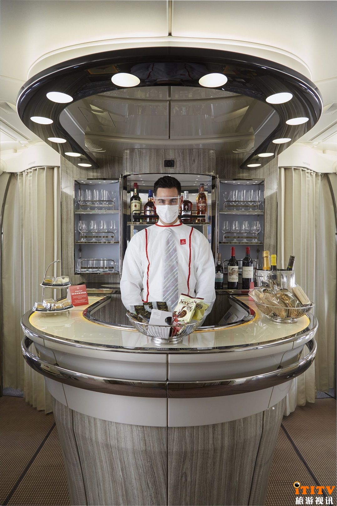 供头等舱和商务舱乘客使用的A380机上行政酒廊,在为乘客提供有限座位空间并设置安全社交距离举措的同时,将变身成外带酒吧。酒廊仍将为乘客提供葡萄酒、烈酒、软饮和预先包装好的小食,供乘客带回自己舒适的座椅上享用。乘客还可根据喜好,在座位上按需零点。在部分波音777客机上设置的商务舱和头等舱社交区域,也已重新对乘客开放,提供预先包装好的小吃供乘客拿取和带走。