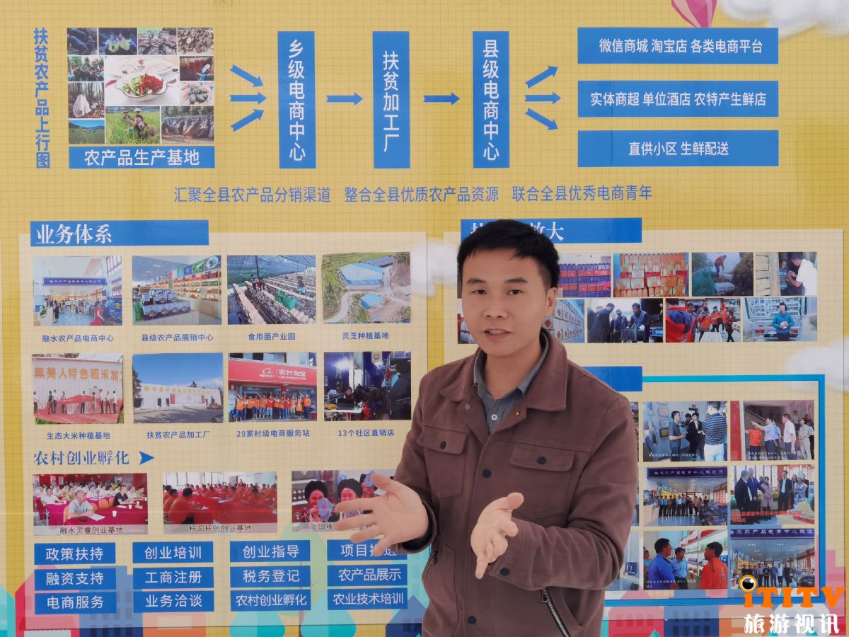 在融水旅游集散中心,记者们除了看到介绍融水旅游的大屏幕、宣传手册等,更多的是琳琅满目农副土特产品展示区域。一打听原来是由于疫情影响,游客量减少,中心引进电商机制,在这里开辟农副土特产品产供销线上线下一条龙服务的平台和渠道,助推当地扶贫产业提质增效加快发展。“呀呀呜”农产品电商运营团队负责人吴绍林告诉记者,公司成立才两年多、仅20余名员工,通过服务在大苗山一线的电商服务站和带贫种养合作社,深入挖掘整合当地优质农产品资源,规范标准、掌握源头、把控品质,帮助村民让更多有特色有市场的农产品走出山寨,2019年一年就签约带动合作社108个,实现农产品扶贫销售额2300万元,直接帮助的贫困户达2200户。同时在融水旅游集散中心常年展示销售的农家生态米、野生蜂蜜、泉水田螺、竹荪、香菇、木耳等特色农产品,也受到了过往游客的青睐,不少人回去后还与电商平台建立了长期采购供货合作关系。