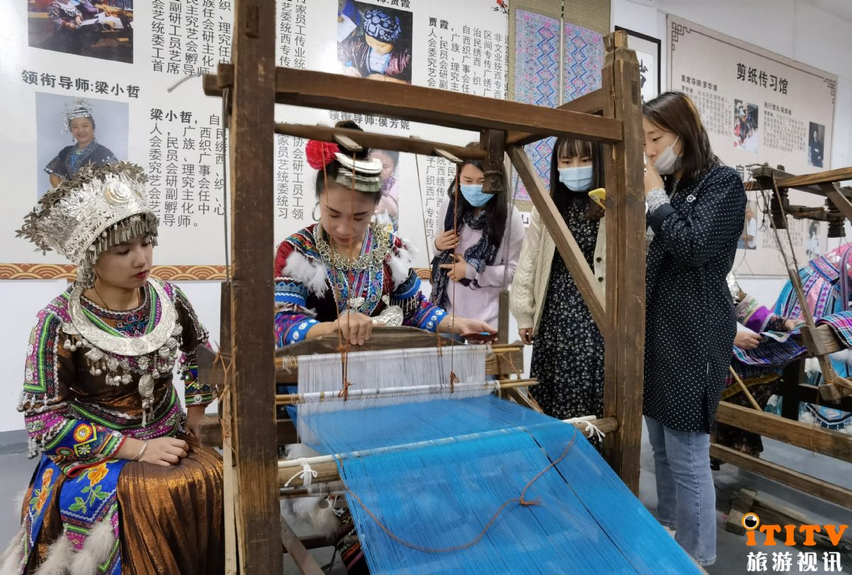 记者在“苗家小镇”的“巧娘集市”楼的“金绣球居家灵活就业示范基地”,参观了广西柳州彩云苗艺商贸有限公司承办的与广东合作项目《染·织·绣 非遗生活美术馆》。该公司的负责人李伊园是广西省级非物质文化遗产融水苗族刺绣传承人,她介绍说,从2019年开始,已经开办了苗绣培训班,培训对象主要来自易地扶贫搬迁点和乡镇建档立卡贫困的苗族妇女;培训采取理论讲解和实际操作相结合的方式,重点对 “平绣”“锁绣”“锁链绣”等绣法进行详细解析和实际操作。培训班一般每期为期半个月,先后举办了6期,近400名妇女接受了技能培训,目前已经有80多位优秀学员与公司签约,成为专业绣娘,公司把刺绣原料发放到她们手中,让她们在家中进行“居家式”生产加工,实行按件计薪,确保她们绣得出、卖得上价、有收入,不断增强她们的自信心,实现居家就业就能脱贫增收。另一位广西省级非物质文化遗产苗族织锦技艺项目代表性传承人、广西传统工艺孵化中心织绣技艺首席导师唐巧英告诉记者,她在“苗家小镇”走的是公益培训的路子,也收到了很好的效果,陆续吸引了各地大中学生为主的年轻人前来参加短期体验式培训活动。她表示,传统技艺需要更多有志青年通过了解产生兴趣、学习传承。