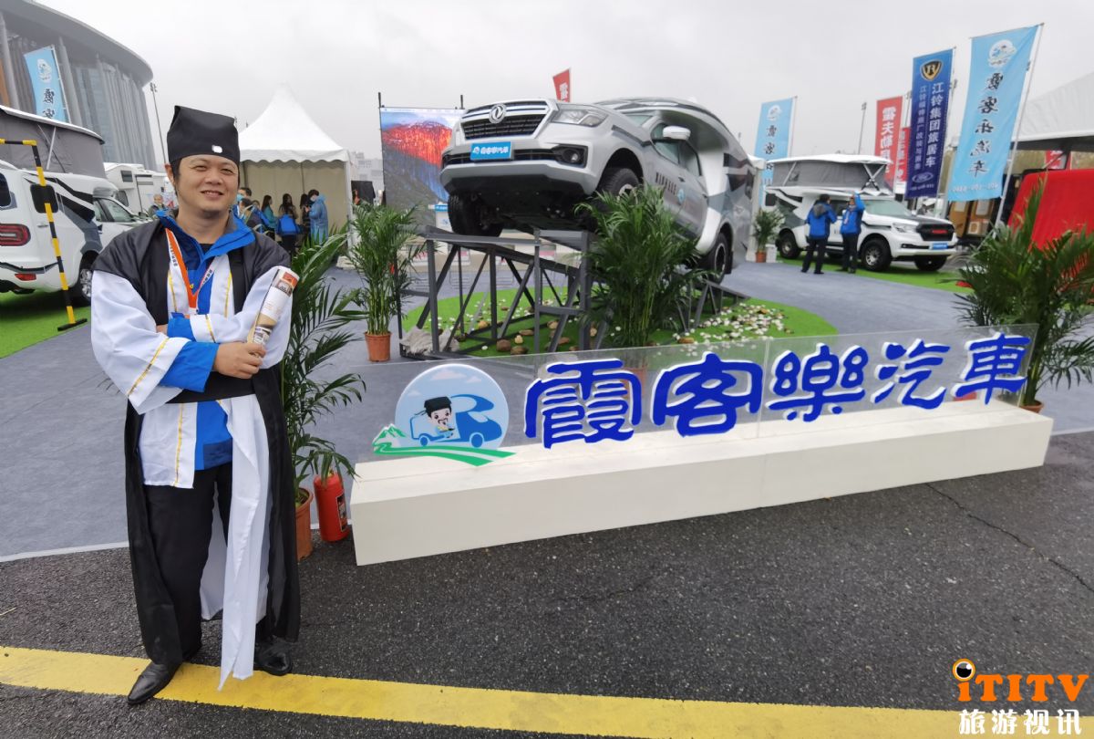 身穿明代汉服的“霞客乐”房车销售人员在现场介绍:徐霞客是名闻天下的中国大旅行家,也是我们当下喜欢旅行爱好房车的年轻人崇尚的楷模。“霞客乐”其实也是寄托了跋山涉水、走遍天下的希冀。品牌旗下的锐骐6和纳瓦拉两款房车采用的越野底盘,更加重视整体的越野性与通过性,在高原、沙漠、山地、城市里都能畅行无阻。最新发布的新款升顶房车-纳瓦拉两座SUC,增加了储物空间,是垂钓、露营、自驾的优秀伙伴。果不其然,这款新车在展会现场吸引了众多房车爱好者驻足观看,仔细品鉴。