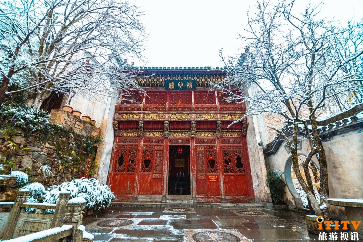 12月14日,受寒潮天气影响,被誉为“晒秋人家”的江西上饶婺源篁岭古村迎来了今冬的第一场雪。