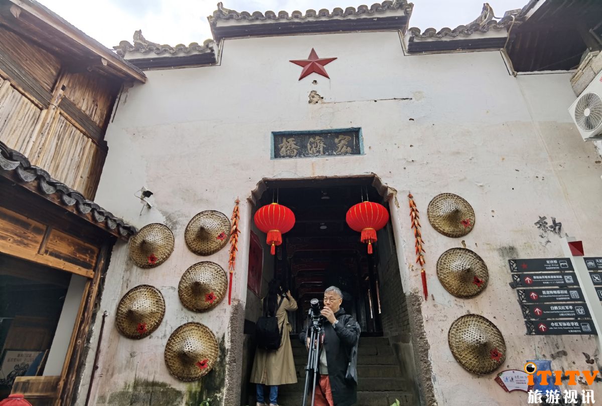 从月光山公园下山来到乌溪江边,通往王村口古镇的乌溪江大桥上插满红旗,最显眼的一面是“中国工农红军挺进师”军旗正迎风招展。沿江而建的王村口镇风景秀丽,几百米的老街上分布着各色店铺,既有传统的土特产店铺,也有“红军饭店”、“红军大凉茶”、“红军驿站”这样的特色小店,皆一色飘扬着红旗。镇上还拥有浙江省省级文物保护单位——王村口革命纪念建筑群,保存着“王村口苏维埃政府旧址”、“挺进师师部旧址”宏济桥以及新建的粟裕刘英纪念馆、小红军体验学校、白鹤尖红军纪念亭等,让这个小镇晕染上一份红色的印记、独有的韵味。