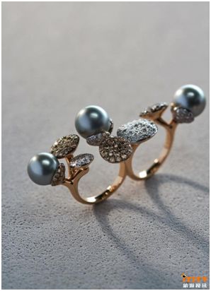 Sabbia of Tahiti 系列以珍稀圆润的大颗珍珠为设计主体,精妙融合了玫瑰金和钻石镶嵌。Y  字形项链沿一排大溪地珍珠倾泻而下,玫瑰金链条更衬托出珍珠的天然魅力。吊坠则以璀璨夺目的白钻、黑钻、琥珀色香槟钻石不规则的手工镶嵌打造自然之感。该系列还包括Pomellato 宝曼兰朵精工夹式耳环与一款别致的双指戒。