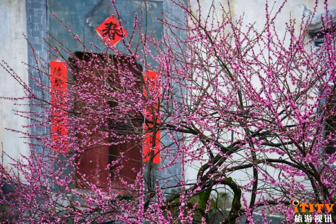 图4 早春二月红梅绽放篁岭古村落