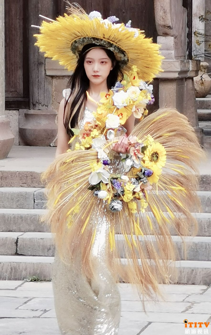 一大早,景区民俗展览馆前广场聚集了一群“小蜜蜂”,他们舞姿萌动,活泼可爱,引得游客纷纷驻足合影留念。紧接着,模特花艺走秀开场了——“花仙子”们穿着轻盈长裙,与周身披挂、插满的鲜花花束融为一体,顿时成为古村中一道靓丽的风景线。随后以别致新颖的“小蜜蜂快闪”巡游活动,从民俗展览馆,经竹山书院、众屋广场、小吃街、游步道,最后抵达梯田花海。游园期间,“小蜜蜂”和“花仙子”不时与游客互动,给女性朋友和小孩子们赠送棒棒糖,添加喜庆气氛。