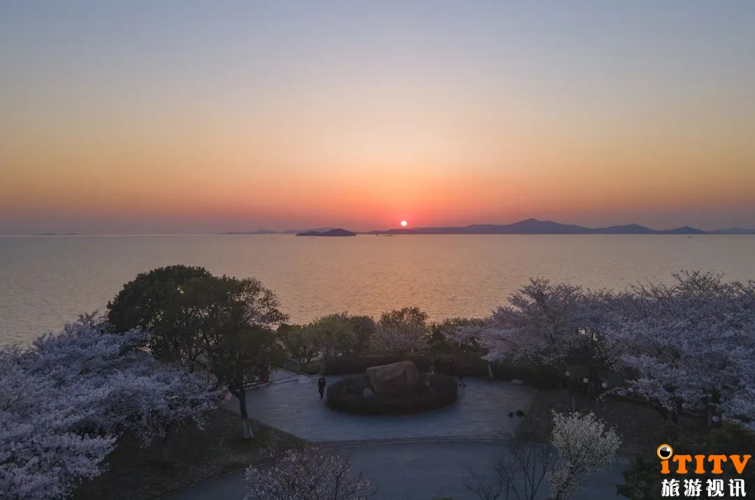 鼋头渚作为无锡著名的赏樱之地,每年都吸引着无数踏春者。但若想要独享一望无际的的樱花,避开人流走花路,那么低调小众的红沙湾便是不二之选。在赏花的同时,还能观赏太湖日落,邂逅烂漫春色又何尝不是一件乐事。