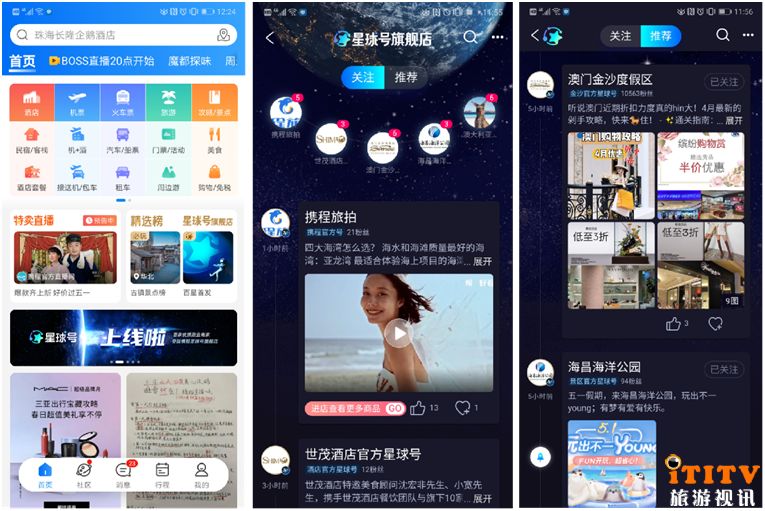 4月28日,星球号旗舰店频道在携程APP首页悄然上线。据携程集团介绍,此次共有百余家旅游业顶级生态伙伴首批入驻该频道,包括旅游目的地;酒店、业主集团;知名景区景点等。作为生态伙伴在携程的官方阵地,受邀入驻的生态伙伴将可以在官方星球号发布最新动态、商品并与粉丝互动。这也是自携程发布“旅游营销枢纽”战略以来,星球号首次实现商家规模化亮相;同时携程APP首页也进行了改版,为星球号旗舰店频道开通了“寸土寸金”的一级入口。