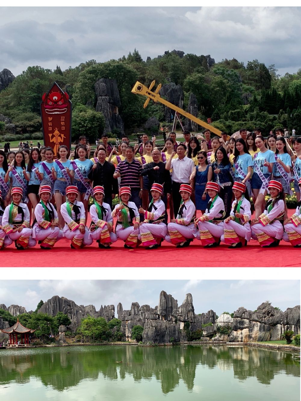 世界自然遗产石林风景名胜区是本次大赛走进“美丽云南”的首站,在石林民族歌舞团热情洋溢的迎宾歌舞中,在石林千姿百态鬼斧神工的天然背景前,选手佳丽们上演了青春靓丽的魅力秀,引来无数游客观看驻足。