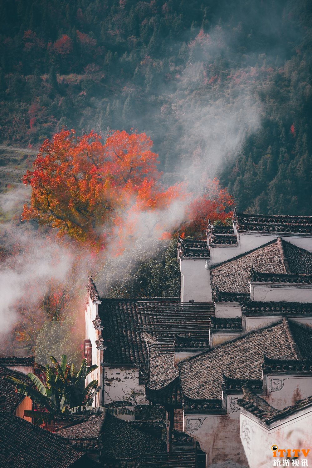 婺源篁岭,因晒秋而闻名遐迩,曾以强烈的视觉冲击成为“最美中国符号”,一直为摄影人所追慕。名木修竹环抱的篁岭古村,有“植物大熊猫”之称的红豆杉多达78株,尤其是高达40余米的枫香数十棵,不仅年岁久,而且数量多,品种全。枫叶洗尽翠绿后转变成炽烈的红色,历年来一直都吸引了众多赏枫人士前来观赏。2018年篁岭还从国外引进大批红枫,打造世界枫情园,“晒秋人家赏红枫”也成了全国乡村旅游的热门产品。