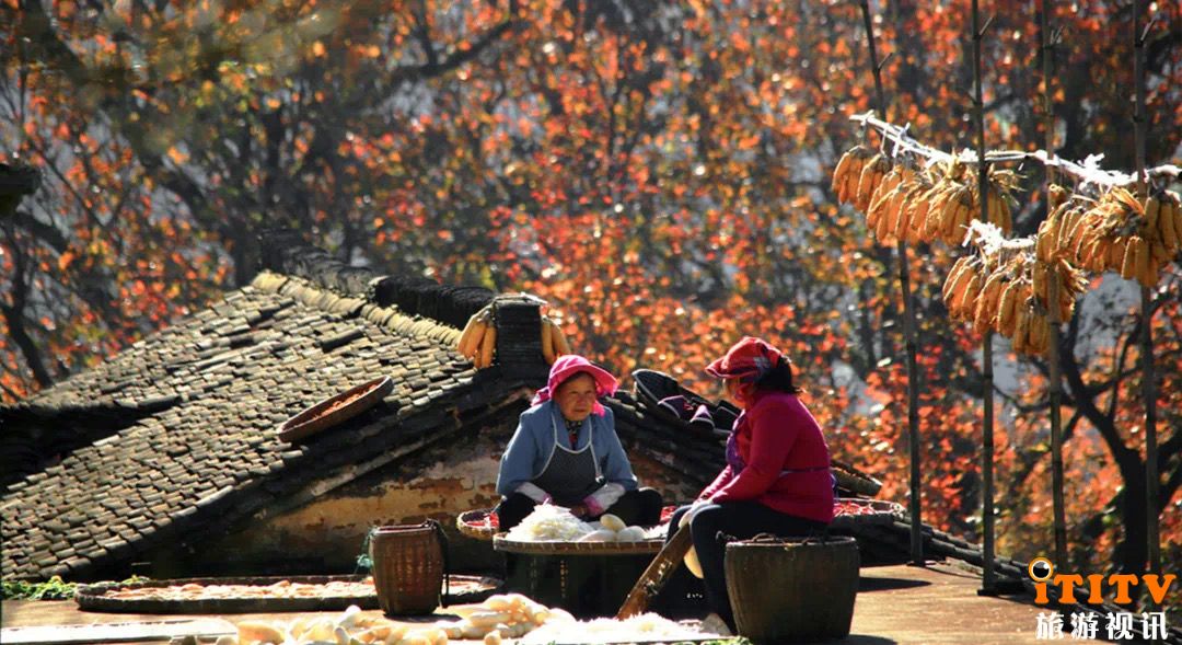 尚在秋色余韵中的篁岭,黄得似金、红得似火,在层林尽染与黛瓦白墙的相互掩映下,火红的枫树林就如画卷般在眼前徐徐展开。走进篁岭,就似人在画中游。枫树姑娘害羞着红了脸,火红的树叶在风的吹佛下发出沙沙声,邀请远方近处的你来篁岭“约会”。