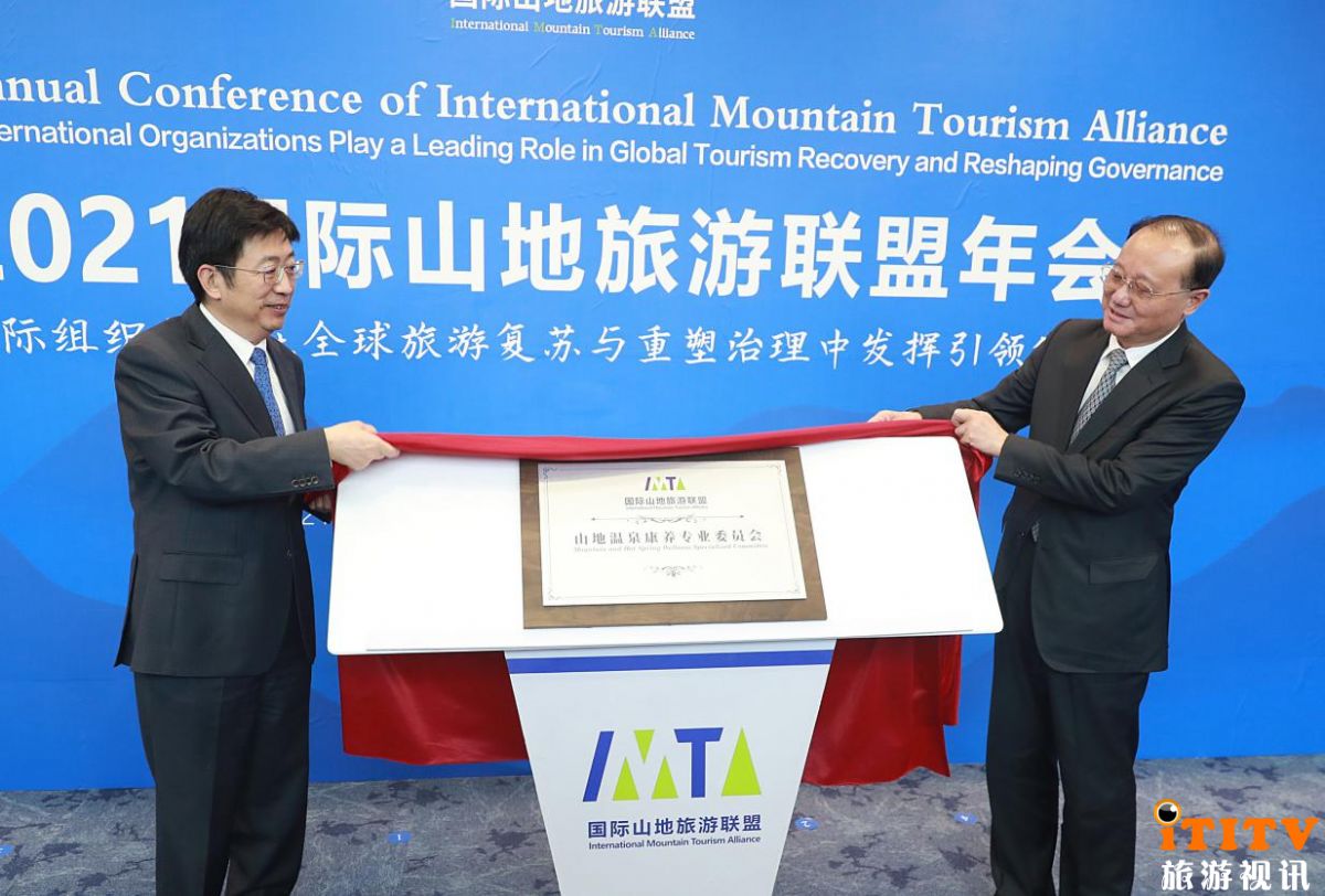 年会上,国际山地旅游联盟山地温泉康养专业委员会揭牌,专业委员会的成立将促进山地温泉资源有效利用和可持续开发,加强山地温泉康养价值研究和探索,为消费者提供更多的优质山地旅游产品。国际山地旅游联盟副主席邵琪伟、贵州省副省长谭炯为国际山地旅游联盟山地温泉康养专业委员会揭牌。