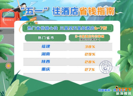 据携程介绍,极高的性价比成为吸引住客在酒店度假的重要因素。今年五一假期,部分省份的酒店价格较去年有较大幅度的优惠,福建、湖南、陕西、重庆的三星至五星级酒店均价普遍是去年的6-7折。假期前夕,携程酒店还推出了“五一不止步”活动,用户连住2晚以上即可享6折起的价格。