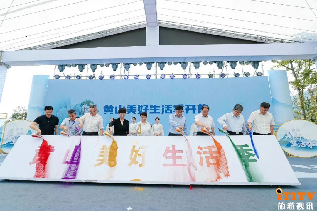王翠凤副省长宣布黄山美好生活季开幕,并与戴斌院长、王云波一级巡视员、凌云书记、左俊副秘书长、孙勇市长、何淳宽市长、程寄县书记、洪清华董事长等共同启动开幕仪式。