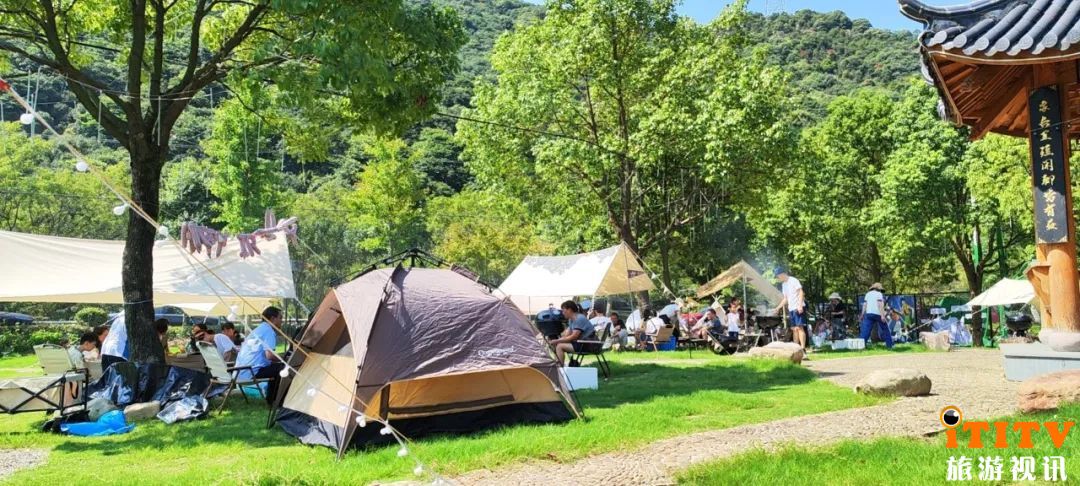 图1:游客在宁波哩呀罗国际度假区面朝森林,向山而栖露营