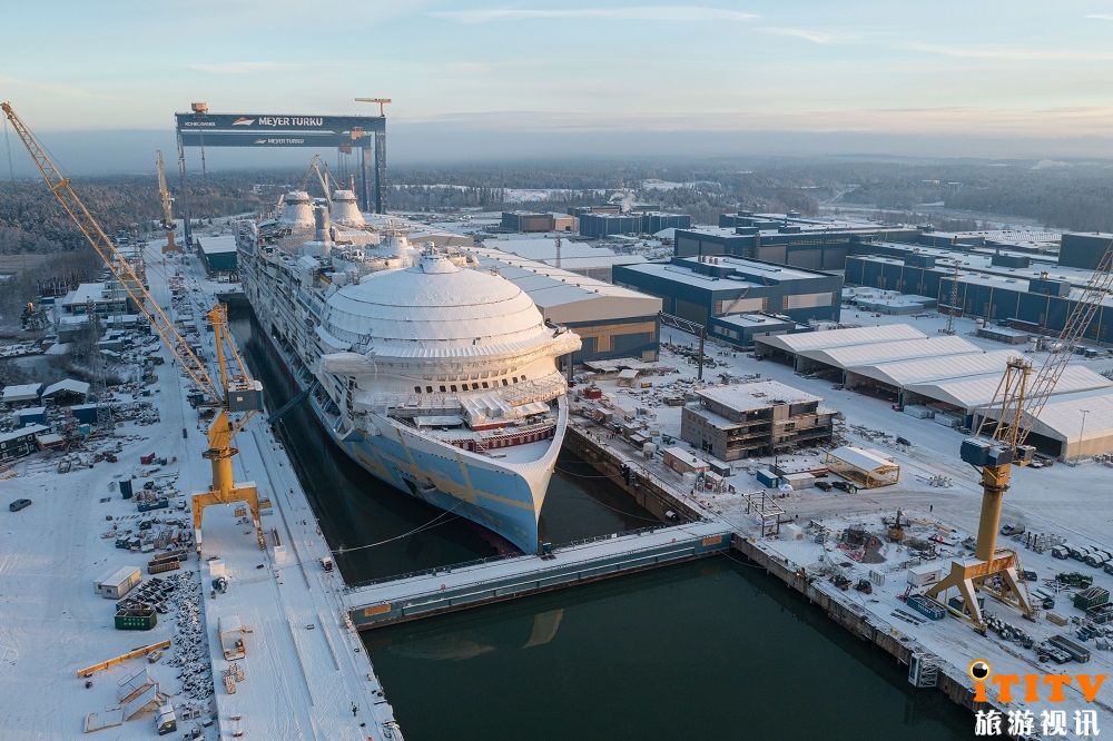 12月9日,皇家加勒比国际游轮旗下最新游轮“海洋标志号”达成了又一重要建造里程碑——她于芬兰梅耶图尔库船厂浮出干船坞,首次来到水面,展现船体真容。