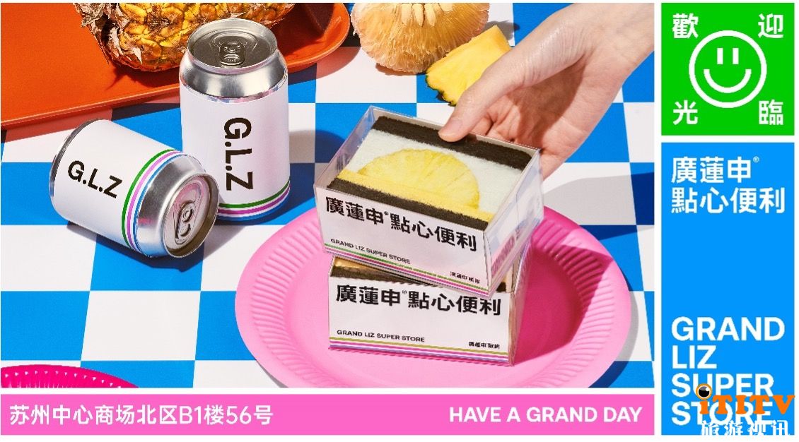 廣蓮申以貼近生活的 [点心便利] 为主题,加上蓝、粉、绿明快主色调,运用抢眼的棋盘格、购物推车等便利店元素,在苏州中心商场, 打破次元壁、呈现动漫中的创意点心空间!除了招牌女王卷、巧克力哈斗等,消费者还能体验点心贩卖机、冰淇淋机器人, 以及浆果酪酪、抹茶生巧贩团、风椰三明治等便利店限定商品。更有实用购物袋、口罩、香片等限定周边, 手速领回家!