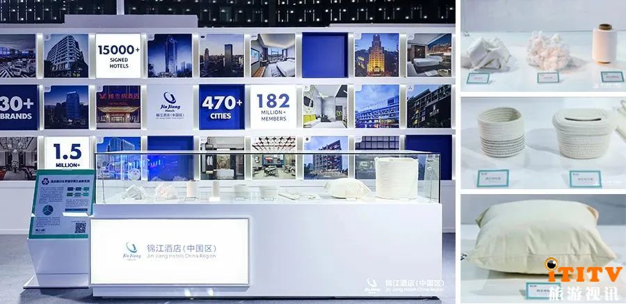 作为锦江的“创新大脑”,锦江GIC联合锦江酒店(中国区)已陆续推出9个自主创新酒店品牌,升级焕新5个存量品牌,并在在营2100间客房内分别植入了符合市场需求的9大主题体验模块。此次展会,GIC带来了创新品牌、体验模块市场化铺开的成果捷报和度假新趋势分享,并在场馆内的“布草回收展示区”,首次公开展示了废旧布草循环再生的创新实践——收集处理酒店运营过程中产生的废旧布草,通过再生工艺制成储物篮、洗衣袋、抱枕、纸巾盒等绿色产品,引发围观。