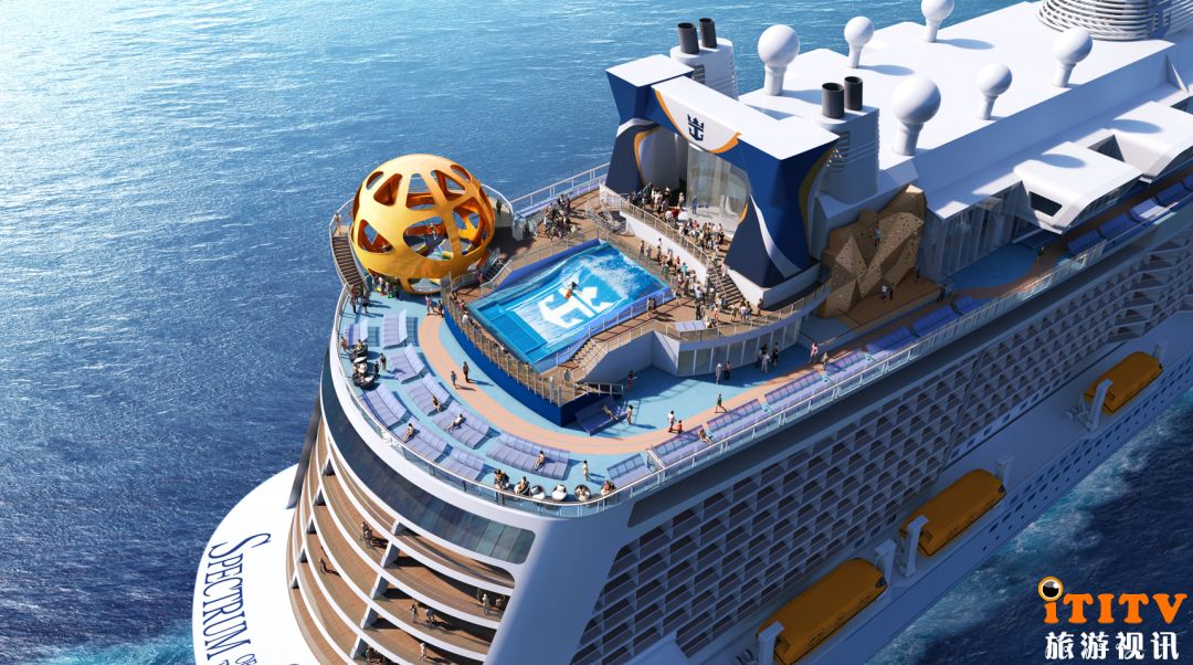 斥资近12.5亿美元在德国迈尔船厂建造的“海洋光谱号”是超大游轮的杰作,总吨16.8万吨,长348米,宽41米,共有16层客用甲板,2137间客房,最多搭载5622名宾客。游轮上提供多达33种中西荟萃的餐饮选择,无论是可供一日三餐海上盛宴的主餐厅和品种多样的帆船自助餐厅,还是原汁纯味的奥利弗意式餐厅、美式牛排馆、海涵火锅、泉·日本料理和铁板烧等特色餐厅,宾客可以在一个航程中尽享全球美食。白天宾客可以登上荣获吉尼斯世界纪录游轮最高观景台的北极星,在距离海平面近90米的高度,俯瞰船体、眺望海天和目的地的壮丽景色,亦可以在甲板上冲浪、跳伞、攀岩,或在海上最大室内多功能运动馆玩碰碰车、篮球、乒乓球、溜冰、击剑、射箭、电竞等活动。晚间多场皇家王牌音乐舞蹈大秀轮番上演,融合高科技和强大专业演艺阵容、沉浸式的场景演绎《丝绸之路》、《魅舞今昔》、《光谱奇侠》三台大秀,令宾客宛如置身于百老汇或伦敦西区的夜生活。“海洋光谱号”上的“皇家大道”是海上最大的免税购物街,有手表、首饰、箱包、化妆品等各类商品的一线、高端、潮流大牌的最新款式。被称为“船中船”的“皇家府邸”,是专为套房宾客打造的VIP休闲和餐饮场所。“海洋光谱号”堪称“最适宜亲子的游轮”,包括数十种运动项目、复式双层“完美家庭套房”、适合6个月到18岁的儿童和青少年的海上历奇俱乐部和寓教于乐的国际文化氛围。2019年6月-12月“海洋光谱号”从上海成功运营48个航次,接待过超23万名中外宾客,收获了来自媒体和消费者的赞誉和好评。