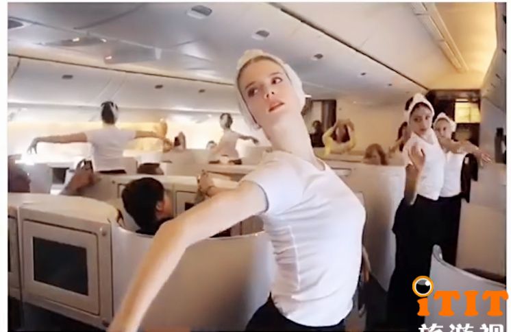 法航:机上“快闪” 精彩呈现空中芭蕾表演