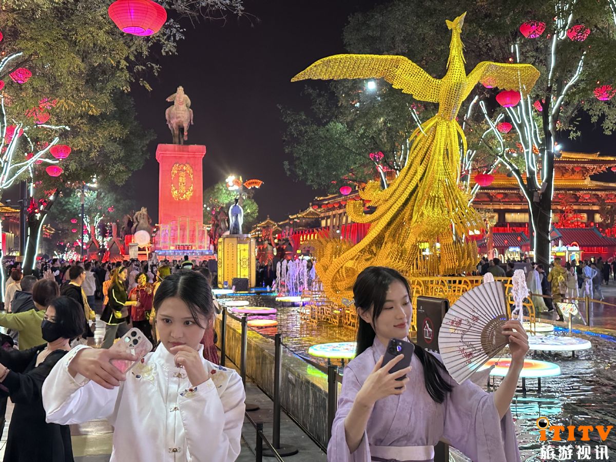 大唐不夜城作为西安的地标性街区和一张靓丽名片,聚集了最具人气的元素同样也渗透着中国传统历史文化。据了解,大唐不夜城位于西安市大雁塔脚下,南北总长2100米,东西宽500米,总占地936公顷, 2002年启动建设,2018年,成功入选全国11条商业步行街改造提升试点后,按照商务部关于中国特色、地方特点、国际水平的总体要求,西安市曲江新区对街区进行了全面提升,文商旅融合发展的特点日益明显。大唐不夜城步行街以"一轴·两市·三核·四区·五内街"为总体布局:一轴为“大唐不夜城文化商业轴";两市为“贞观新风韵唐市、创领新时代都市";三核为“大雁塔广场景观文化核心、贞观文化广场时尚艺术核心、创领新时代广场休闲时尚核心";四区为“大雁塔盛唐景观人文风貌展示区、中华传统美食文化生活品鉴区、贞观国际艺术文化交流体验区、创领新时代都市休闲文化区"。五内街为“慈恩镇-陕西风情小吃文化街、新乐汇-中华传统美食文化街、欧凯罗-潮流音乐酒吧文化街、温德姆-品味生活咖啡文化街、阳光城-SKP时尚青年艺术文化街"。曲江新区为了提升大唐不夜城的颜值,对街区门头牌匾、户外广告进行了集中提升,还增加了多处“键盘地板"提升游客逛街趣味,增设激光灯为盛世天街投下梦幻图案。与此同时,曲江新区还在努力丰富大唐不夜城街区文化内涵。其中,以西安音乐厅、陕西大剧院、西安美术馆为代表的大型公共文化场馆引领效应明显,曾创造过一年上演近600场次、全国首演率达30%。此外,一批新的文化IP在大唐不夜城涌现,以《再回大雁塔》《再回长安》为代表的实景演出,成为独具西安特色的演出新品牌;主题音乐喷泉、流行音乐舞台让观众流连忘返;与"不倒翁小姐姐"一眼万年、看"胡姬"与"唐妞"斗花车、在"大唐制造"“长安市集”等小吃街上品尝西安特色小吃,数十上百个摊位的小吃名字可能你都没有听说过:拇指生煎、古法酸梅汤、超长大薯条、热汤凉皮等等……宛如梦回盛唐。