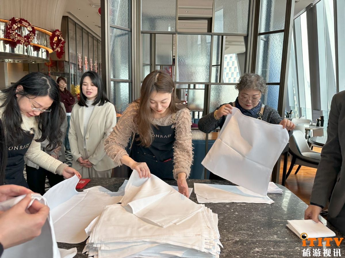 杭州康莱德酒店与瀾餐厅经理傅泰友是一位很有经验的西餐厅经理,他在教会新来的“斜杠希”(希尔顿对“零工”的昵称)不仅耐心,而且规范。在他手把手的教导下,一个新手不到十分钟就学会了折餐巾、放台布、摆刀叉等劳动工序,解决了就餐高峰之前的大量简单而重复性的备餐工作的人手需要。