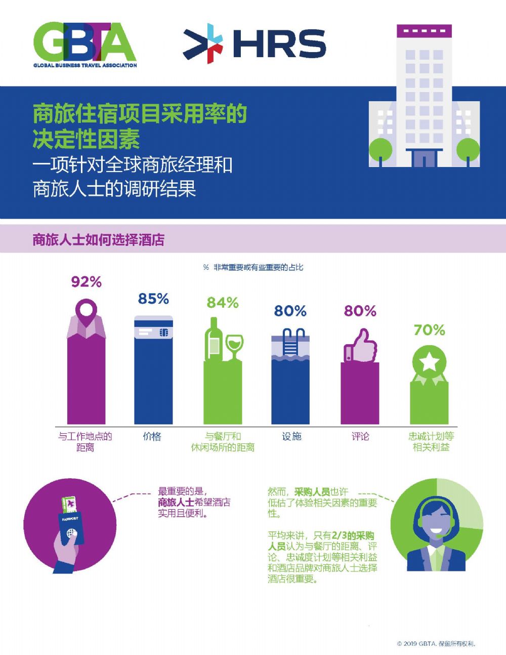 相比于其他支付方案,88%的差旅人士更愿意预订提供集中支付方案的酒店。 商旅人士更愿意选择便捷、个性化、设施齐全且价格具有竞争力的酒店,全球商务旅行协会 (GBTA)与HRS合作展开的一项最新调研发现商旅人士尤其重视这些偏好。研究同样发现许多公司的商旅采购人员低估了这些因素对于商旅人士的重要性。 此次全球调研收到了600余位商旅采购人员和高管以及近2,500位商旅人士的反馈。线上调查从2019年3月持续到5月。GBTA将在8月6日(星期二)的GBTA芝加哥会议上正式发布此次调查的结果。 预订:采购人员和商旅人士的认知存在较大差异 绝大多数采购人员和商旅人士都认为与工作地点的距离(92%商旅人士,99%采购人员)和价格(85%商旅人士,94%采购人员)对于选择酒店十分重要。但是,采购人员可能低估了体验因素的重要性,比如与餐厅和休闲场所的距离(84%商旅人士,68%采购人员)、商旅人士的评论(80%商旅人士,67%采购人员)和忠诚计划的获益(70%商旅人士,64%采购人员)等。 此外,在预订工具方面,商旅人士比采购人员更看重个性化。一半(50%)的商旅人士表示他们希望线上预订工具可以提供更多设施齐全的酒店选择。然而仅仅五分之一(19%)的采购人员认为有这个必要。关于预订过程中的升级、附加服务等个性化选择,74%的商旅人士认为这同样重要,相比之下仅62%的采购人员这么认为。 支付:集中支付方案有望增加对首选酒店供应商的使用率 公司集中支付和直接支付在世界各地呈现不同使用程度。85%的人表示费用报告和费用批准流程的简化以及报销的速度对于费用管理十分重要。 相应地,研究发现商旅人士喜欢集中支付方案。集中支付方案下商旅人士不需要使用个人信用卡,这也成为商旅人士选择预订哪家酒店的决定性因素。目前只有30%的商旅人士使用集中支付或直接支付方案向酒店付款。然而,88%的商旅人士表示如果他们的公司提供集中或直接支付的酒店,相比于不提供这种方式的酒店他们会更愿意预订。 “对于想要提高首选酒店和预订渠道使用率的酒店项目来说, 88%是一个标杆性的数字。”HRS亚太区高级副总裁姜君说,“一旦商旅人士使用集中支付,他们就会喜欢这种支付方式。他们不再需要使用个人资金进行支付或是排队等待开发票,报销流程和费用报告都变得更简洁。对于采购人员来说,集中支付帮助他们提高员工预订的合规性,并将为采购提供更丰富的第三层级数据。同时,酒店方也将获得更多的预订。这是三方的共赢。” “建立与管理差旅项目是一项平衡的艺术。”GBTA 研究分析师Hannah Jaffee说,“尽管实用性对于商旅人士至关重要,他们仍把商旅当成一种体验,并且希望他们的酒店选择可以体现这一点。如果酒店采用率是一个问题,商旅采购人员可以采取战略性对策,在签订协议酒店时就将商旅人士偏好因素考虑进来。” 研究方法: 从2019年3月到4月11日在全球的企业商旅采购人员中进行了线上调查。712位调查对象回答了至少一个问题。其中有628位合格的调查对象,他们“代表公司管理或采购商旅”。在这些合格的调查对象中,465位完成了全部调查。