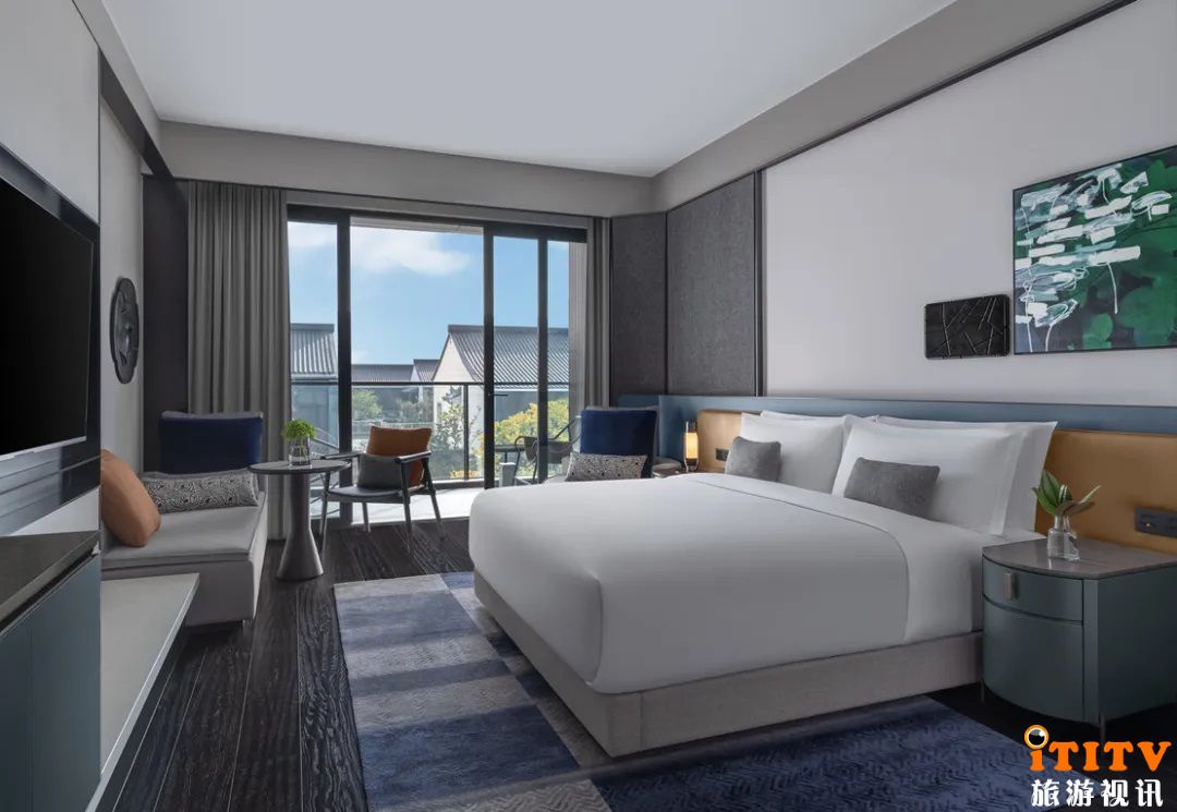 客房中的设计也将江南园林的典雅展现得淋漓尽致,一面是精致的园林水景,一面是小桥流水的人间烟火,端坐在景色优美的阳台或庭院,泡上一壶热茶,于秀雅的苏州园林景色中品茗观景,亦可在雨天,尽享烟雨江南的浪漫。