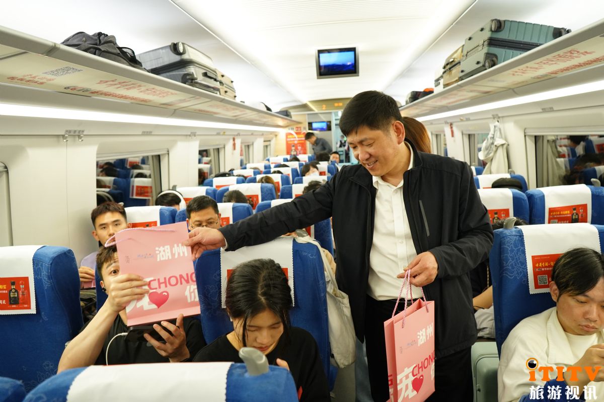 4月29日,湖州市文旅局等一行人员在上海虹桥站到达层设立宣传展台,向过往旅客发放宣传资料,展示精美的文创产品,并播放湖州宣传片。此外,他们还登上途经湖州的G7635次高铁列车,向乘客们发出盛情邀约。他们手持“湖州文旅宠你大礼包”,礼包内包含了丰富的文旅纪念品和实用小礼品,如湖州文旅定制盖章本、拍照卡、文创糕点等,让乘客们在旅途中也能感受到湖州的热情与关怀。据统计,活动期间,共发放了1000份大礼包,总价值达5万余元。