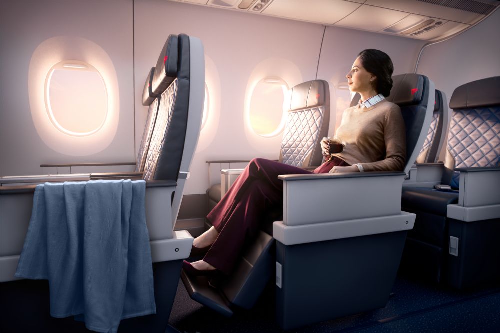 达美尊尚经济舱(Delta Premium Select ):尊尚经济舱以舒适为设计理念,为乘客提供更多空间。座位排距为38英寸(96.5厘米),座位宽18.5英寸(47厘米),椅背可向后倾斜达7英寸(18厘米),腿托和头枕均可调节,并专设瓶装水存放空间。尊尚经济舱乘客不仅可获得额外的空间,还可享受专属服务,并获赠包含所有旅行必需品的洗漱套装,从而让乘客在达到目的地前得到充分的休整。