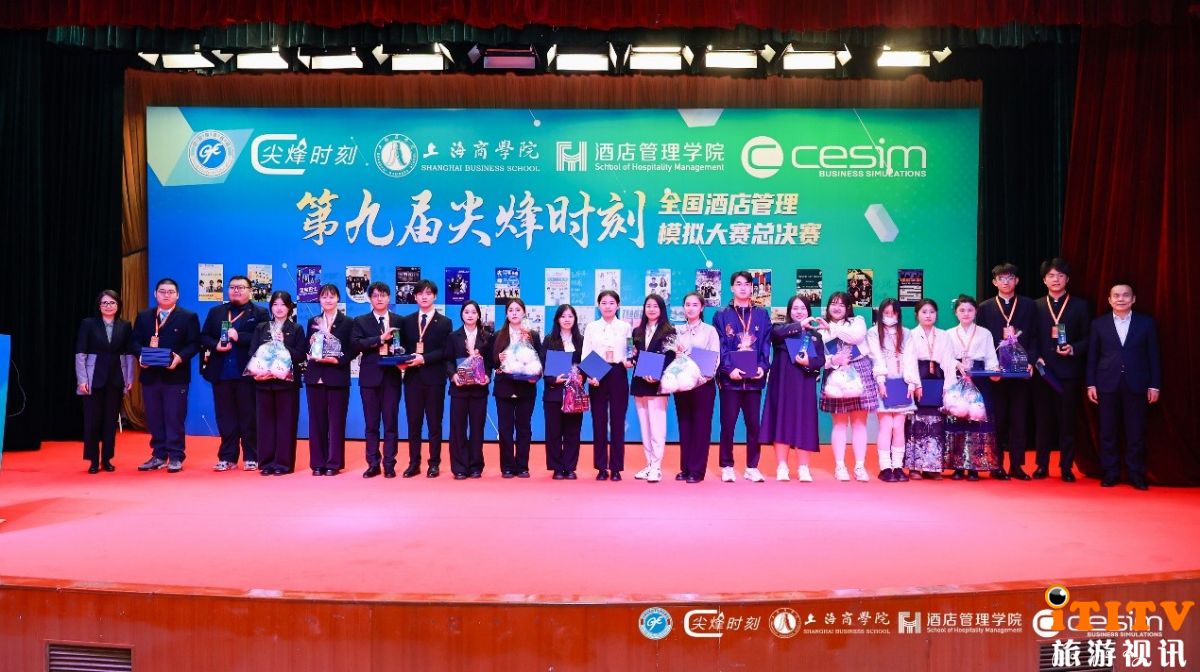 旅游视讯网图文频道2024年11月21日上海讯(编辑/倪怡雯)2024年11月15-17日,由中国旅游协会旅游教育分会、尖烽时刻组委会、上海商学院酒店管理学院联合主办的第九届尖烽时刻全国酒店管理模拟大赛总决赛在我校奉浦校区成功举办。本次大赛自2024年10月启动初赛以来,共吸引全国80余所高校的346支队伍参加。经过初赛、复赛选拔,最后共有来自复旦大学、中山大学、厦门大学等43个高等院校的44支队伍晋级全国总决赛,进行在线模拟决策、英文团队介绍、商业演示三个环节的最终角逐。